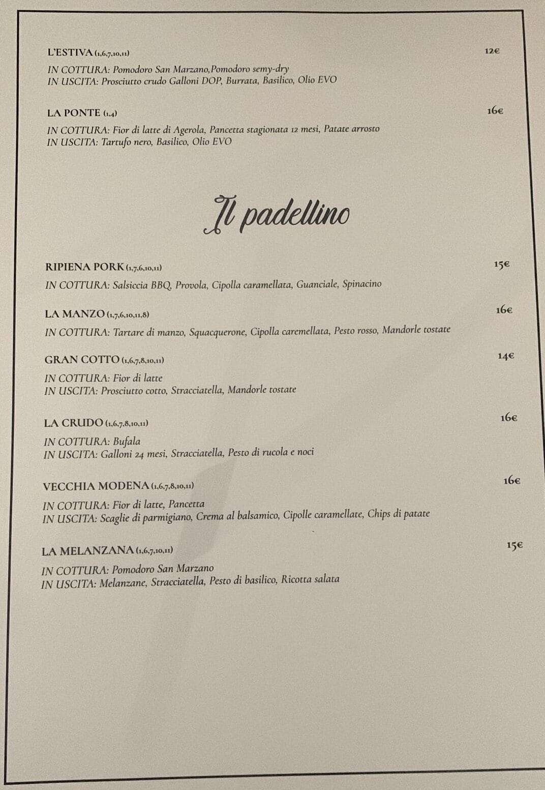 In uscita: prosciutto crudo, burrata, basilico e olio evo